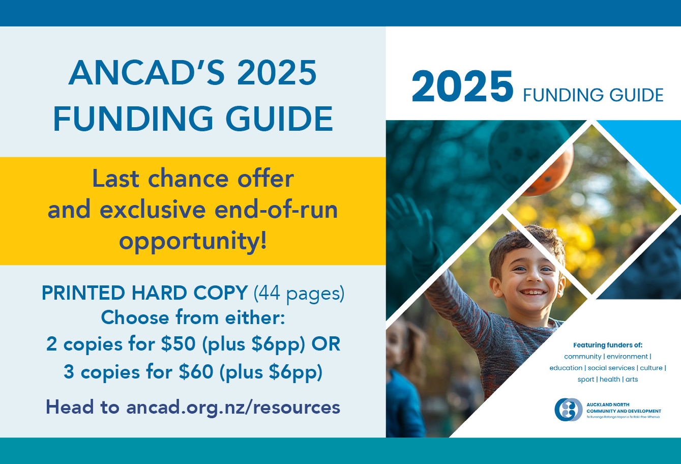 Auckland North Community and Development Inc. (ANCAD), compiles and revises this Guide annually in order to help community groups, schools and not-for-profit organisations to identify potential funders.